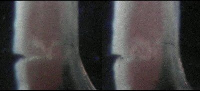 high-magnification focus to the point where the small side of the crack penetrates